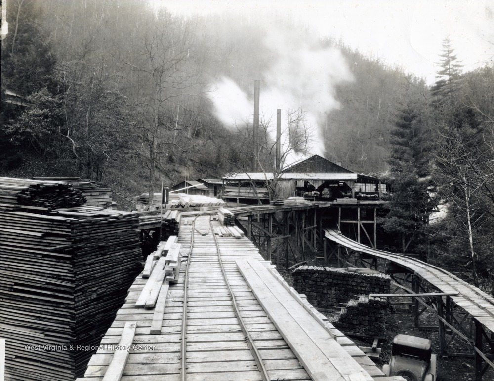- A photograph of a working lumber mill set in an unidentified wooded area in West Virginia.
