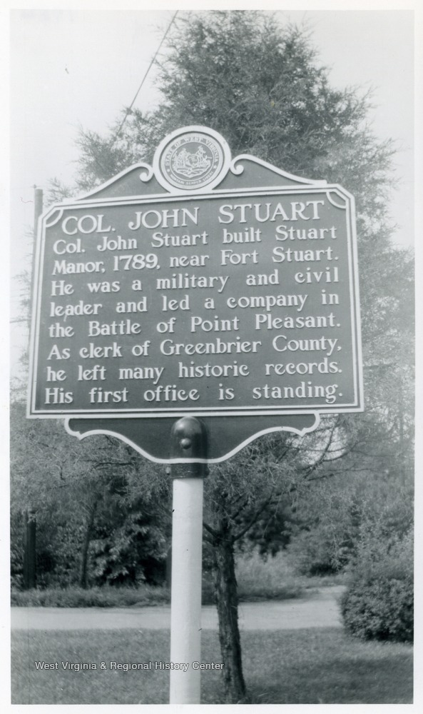 - Col. John Stuart: Col John Stuart built Stuart Manor, 1789, near Fort Stuart. He was a military and civil leader and led a company in the Battle of Point Pleasant. As clerk of Greenbrier County, he left many historic records. His first office is standing.