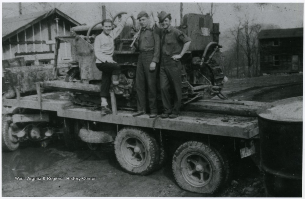 Civilian Conservation Corpsmen Standing by Construction Equipment