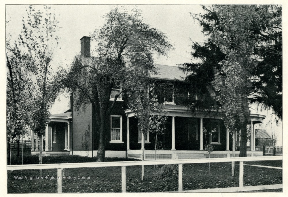- 'The Agricultural Experiment Farm contains about one hundred acres, and the farmhouse is a model country residence.' The photo is from a booklet, 'West Virginia University and its Picturesque Surroundings, 1901'