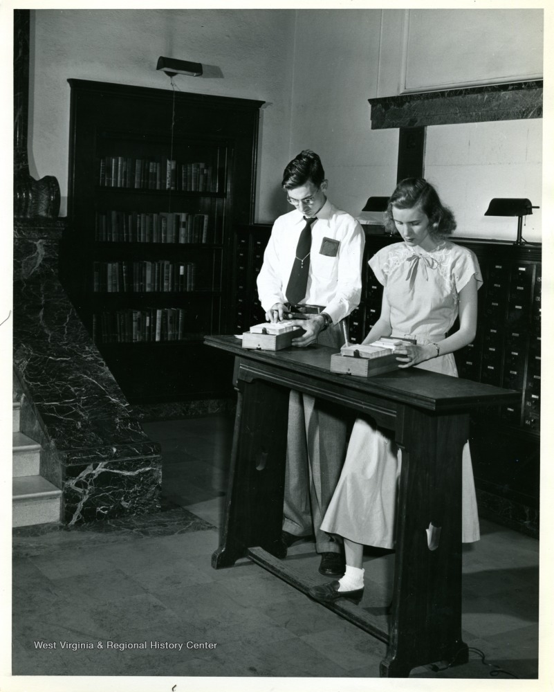 - Academic libraries--West Virginia--Morgantown., WVU--Buildings--Wise Library., Card catalogs--West Virginia--Morgantown., College students--West Virginia--Morgantown.