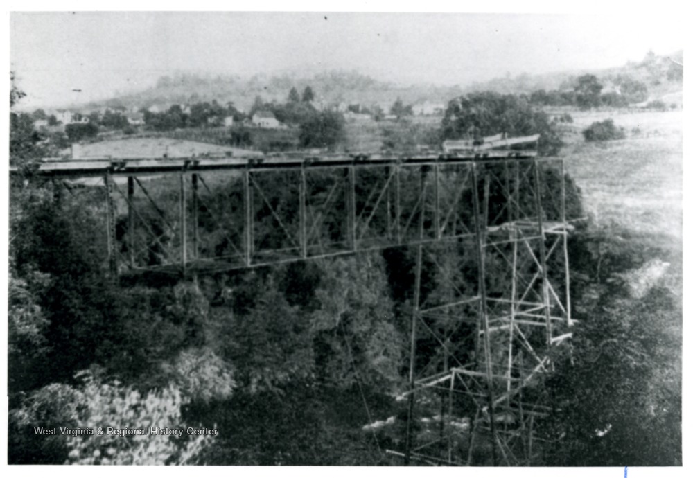 - A bridge over the Deckers Creek; shown here is under construction.