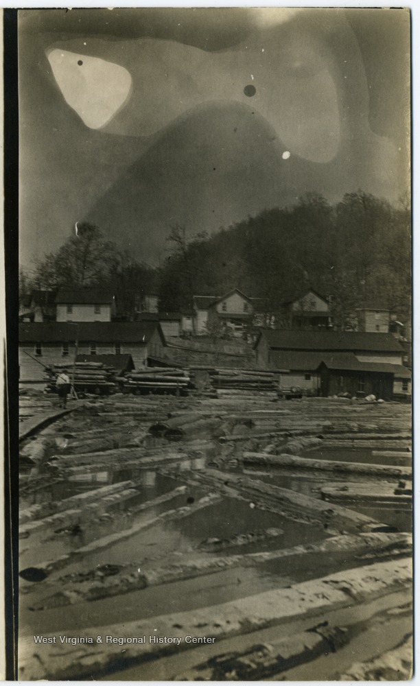 Unprocessed Logs in Mill Pond, Evenwood, W. Va.