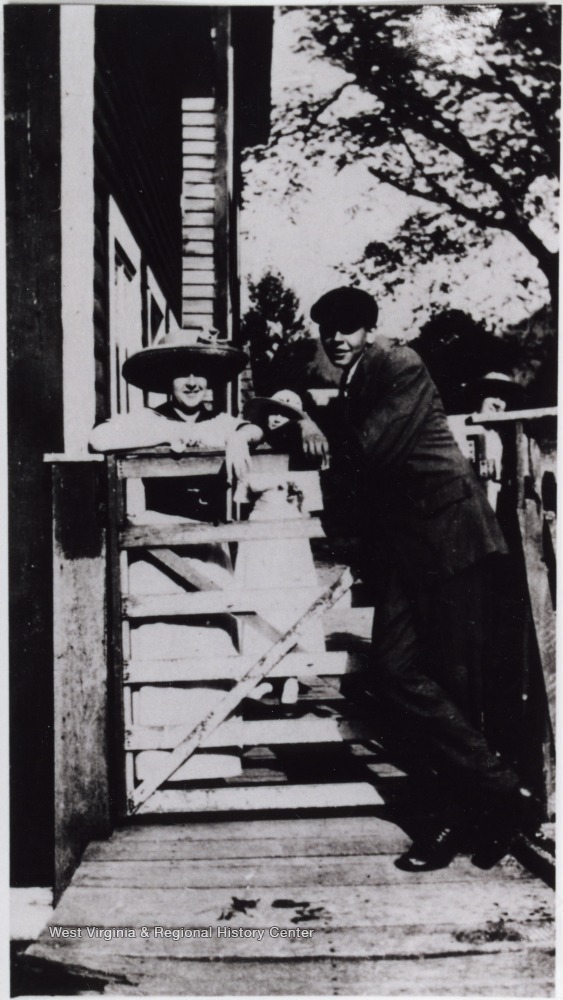 Young Couple Posed at the Gate at the End of the Boardwalk at Webster Springs Hotel
