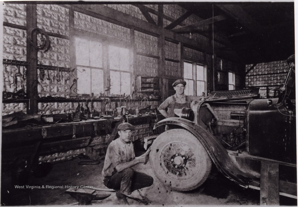 Mechanics in Long Airdox Building beside of Beryl Lanhams Garage at Camden on Gauley