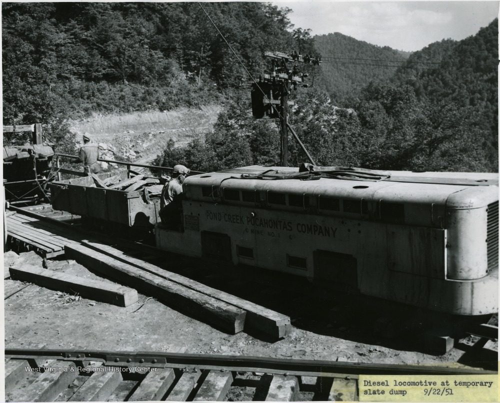 - Diesel Locomotive at Temporary Slate Dump, No. 6 Bartley, Island Creek Coal Company, Beartown Project