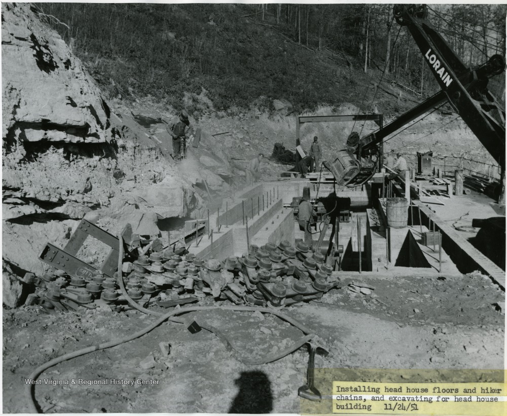 Installing Head House Floors and Hiker Chains and Excavating for Head House Building, No. 6 Bartley, Island Creek Coal Company, Beartown Project