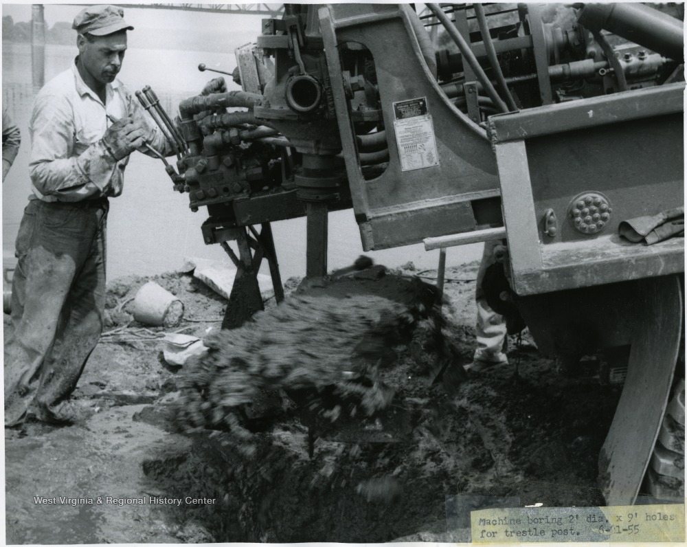Machine Boring 2 Feet in Diameter by 9 Feet Holes for Trestle Post, Kenova Plant, Island Creek Coal Company