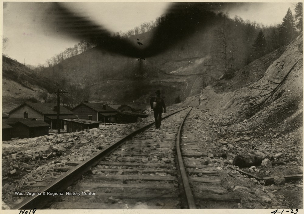 Worker Walking Railroad Track Near Mine No. 14, Island Creek Coal Company