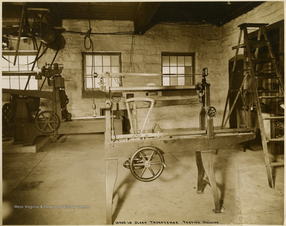 View of 10,000 Pound Olsen Transverse Testing Machine, Mechanical Hall, West Virginia University