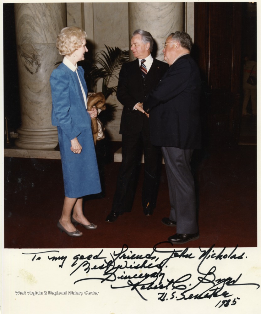 - Senator Robert C. Byrd and Wife Greeting a Man, Likely John Nicholas