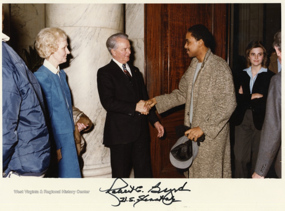 - Senator Robert C. Byrd and Greeting Visitors from the WVU Marching Band