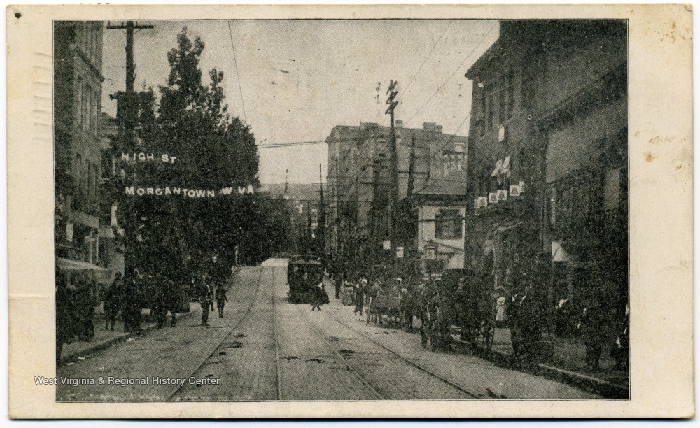 - Trolley cars--West Virginia--Morgantown., Street-railroads--West Virginia--Morgantown., Cities--Morgantown--High Street.
