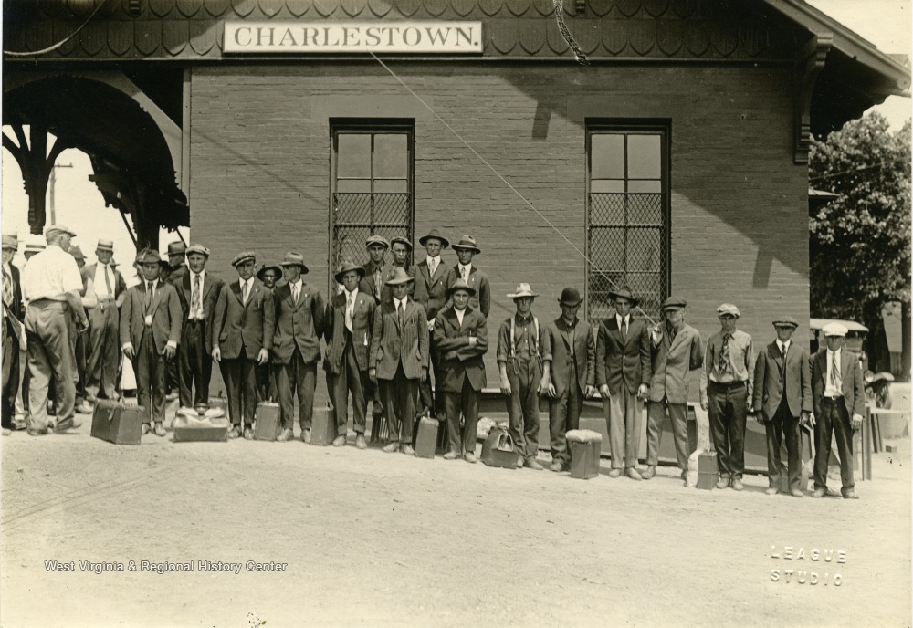 - Unidentified Group of Men Lined Up at the Charles Town, W. Va. Train Station