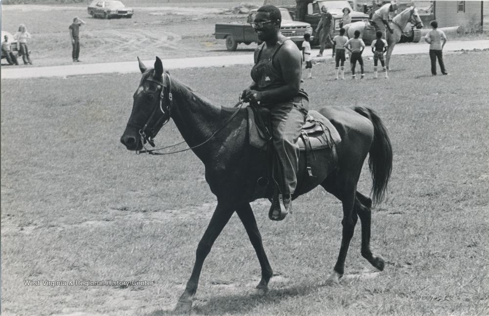 - Ed Cabbell riding a horse during the John Henry Folk Festival in Charleston, W.Va.