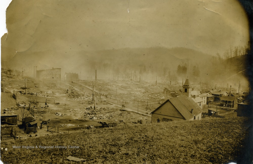 - Probably a photograph of Norton, Virginia, southwest of the West Virginia state line, soon after a fire destroyed much of the town.