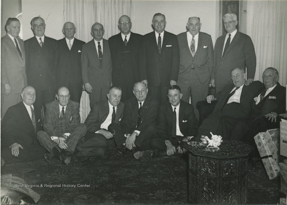 - Standing L to R: Hawker Newton, Clarence Berry, Harry Davisson, Clay Wymer, Lawrence Souders, James M. Guiher Sr., Roy "Dusty" Ash, Karl Weaver. Seated L to R: Douglass "Bill" Bailey, L. Earl McWhorter, Burke Morris, Graham Lynch, Fred Chamberlaine, Edgar Needham, George Stoner. Photograph taken at James M. Guiher's 60th Birthday Party.