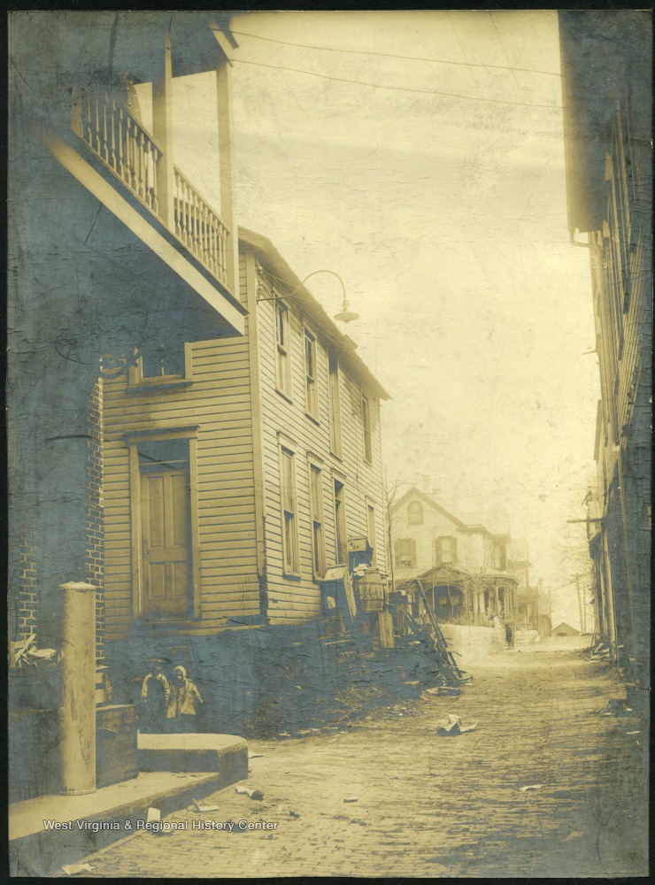- Probably looking east towards High Street. The two children on the left are not identified.