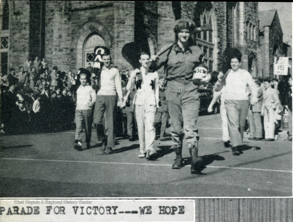 - Mountaineer Mascot, James G. Coughlin Leading Parade Down High Street, Morgantown, W. Va.