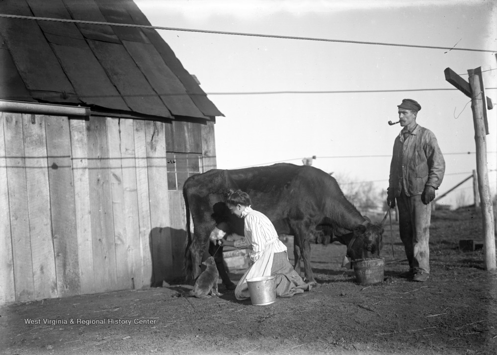 - Julia Taylor Goodluck Milking Cow Into Cat's Mouth, While Her Husband Oscar Goodluck Stands Beside, Vaw Clue, Pleasants Co., W. Va.