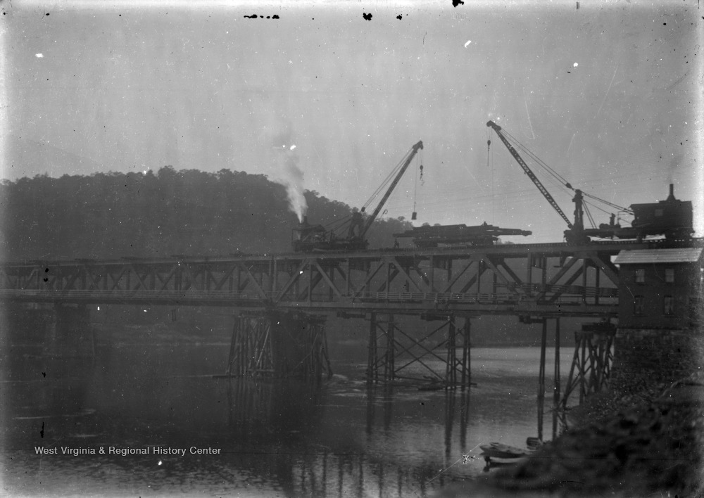 - Steam Derricks Working on Railroad Bridge, Foxburg, Pa.