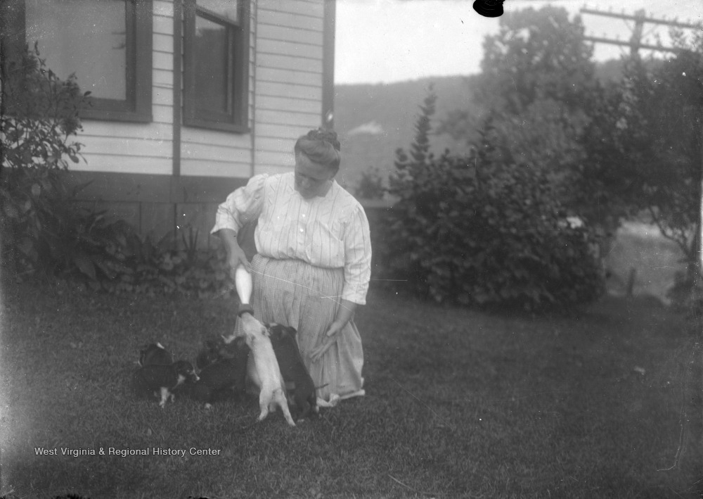 - Mary Rupert Green Feeding Baby Pigs From Bottle of Milk, Foxburg, Pa.