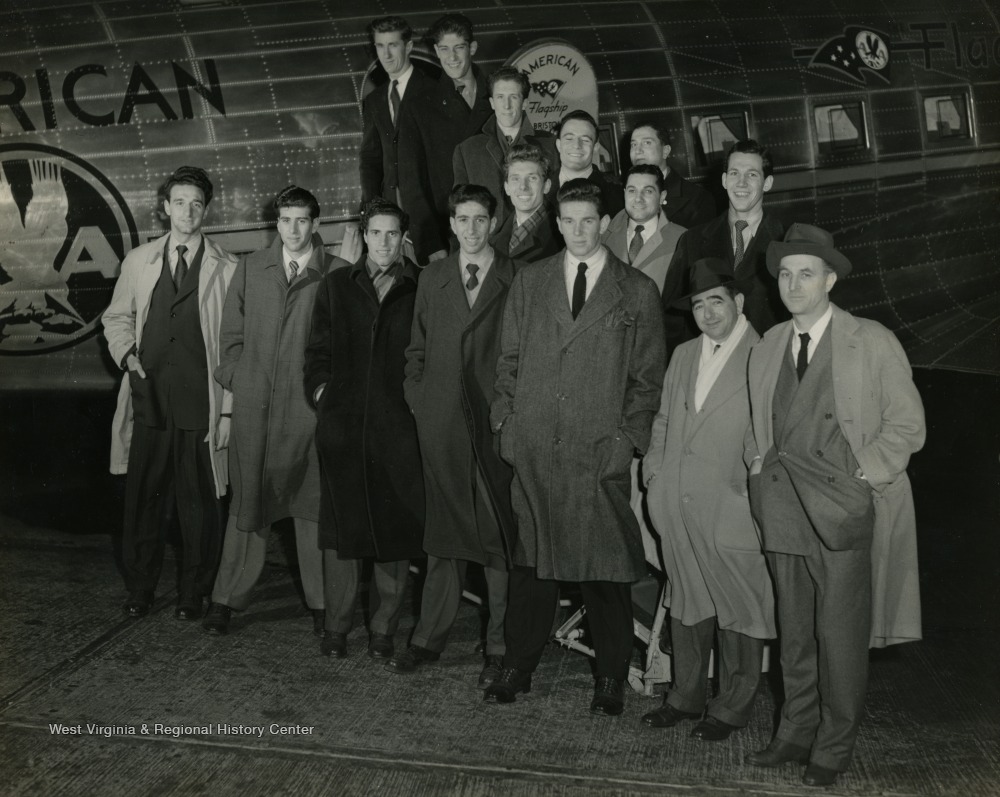 - Clair Bee With Likely Members of One of His Basketball Teams Next to Airplane