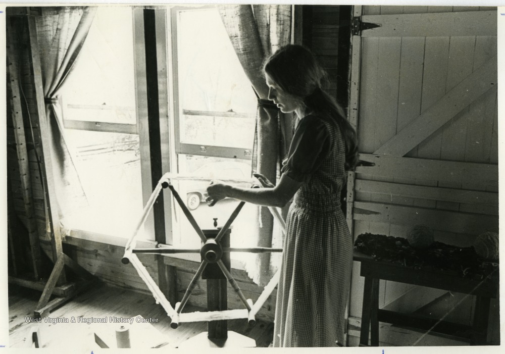 Mary Beth Lind Spins on the Second Floor of the Old Mill Crafts Shop, Harman, W. Va.