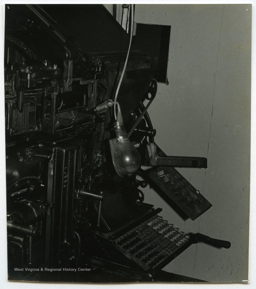 - A linotype machine involved in the newspaper operation at the Wirt County Journal in Elizabeth, W. Va. owned by Woodrow "Woody" Wilson.The photos in this collection were used in chapters that appeared in Mountain Trace, a publication of Parkersburg High School in West Virginia, edited by Kenneth G. Gilbert.
